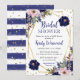 Convite Chuva de Noiva em Moldura de Flores Navy e Creme