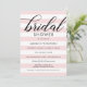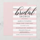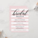 Um convite de chá de panela moderno e feminino com listras horizontais rosa e branco e um título "noiva" em caligrafia preta. O contraste elevado da caligrafia preta nas listras rosa cria uma estética limpa e elegante. Todo o texto é totalmente editável para personalizar sua celebração de chá de noiva.