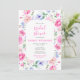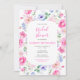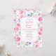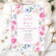 Este convite de chá de noiva em aquarela fofo e caprichoso apresenta flores cor-de-rosa coloridas com folhagem verdejante. O texto combina fontes manuscritas e sem serifa para um visual moderno e elegante. Isso é perfeito para um chá de noiva de primavera ou verão.