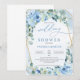 Convite Chuva de Noiva Geométrico Dourado Rosas Azuis Rúst