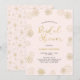 Celebre o seu dia especial com este convite moderno para chá de noiva. Este design apresenta tipografia elegante e padrões de dente-de-leão em textura dourada falsa em um fundo rosa. Mais convites de chá de noiva e suprimentos para festas estão disponíveis na minha loja BaraBomWedding.