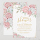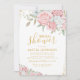 Convite Chuva de Noiva Rosa Bege Dourado Floral Brilho