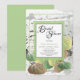 Este design de chuva de noiva rústica apresenta um fundo de casca de árvore Aspen branca rústica e folhas de cores de outono ao longo da parte inferior. O texto do modelo e a borda externa são emoldurados em verde. Personalize os detalhes do modelo, remova o texto ou clique em personalizar para selecionar um estilo de fonte, tamanho e cor de sua preferência.