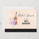 Um convite de chá de panela com um design feminino. Ilustrado com uma imagem em aquarela de um violino de madeira, algumas sapatilhas de balé rosa apoiadas contra ele e decorado