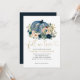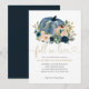 Convite de Chá de Noiva de Outono com Abóbora Brilhante em Azul Naval, Rosa Velado e Verde Botânico Floral Dourado