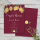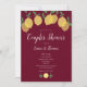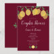 Com limões e folhagens em um fundo borgonha, este convite de chá de panela botânico chic para casais pode ser personalizado com as informações do seu evento especial. O verso tem um monograma das iniciais do casal feliz. Criado por Thisisnotme©