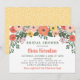 Um convite de chuva de noivas de casamento alegre e colorido com flores pintadas em coral, laranja, pêssego e amarelo com folhagem verde exuberante em cascata no topo. O estilo floral de arte popular combina com a caligrafia coral e o texto serif verde para um visual quente e convidativo em um fundo branco limpo. Também é uma escolha linda para uma celebração de almoço de noiva. Todo o texto é totalmente editável.