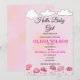 Celebre a chegada iminente do seu pequeno com este convite de chá de bebê doce e caprichoso. Com texturas suaves de aquarela rosa, nuvens fofas desenhadas à mão e flores rosadas delicadas, é a escolha perfeita para um chá de bebê encantador para menina. Personalize facilmente o texto com os detalhes do seu evento.