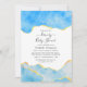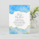 Convite personalizável de chuva de presente para baby shower ou casamento com pedra de ágata azul bebê e folha de ouro falso, adaptável aos detalhes do seu evento.