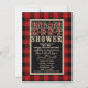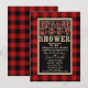 Convites de Chuva de Presentes de Noivado em Xadrez de Búfalo Vermelho e Preto Rústico