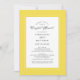 O convite de festa de chá de panela para casais com boda amarela e branca apresenta um belo desenho de borda chique em amarelo iluminado que inclui uma borda branca pequena e elegante. A caligrafia e o texto são cinza carvão em fundo branco. Um modelo moderno para data e ano complementa o design único de caligrafia. O verso do cartão é amarelo sólido. Para obter os melhores resultados, substitua os detalhes do modelo pelos seus próprios detalhes, deixando espaço entre os parágrafos como no exemplo e use letras maiúsculas onde especificado. Envie um e-mail para convitesuites@gmail.com com perguntas ou solicitações personalizadas.
