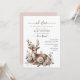 Apresentamos o nosso encantador Convite de Baby Shower, Um tema de veado chique com um veado floral rosa em aquarela na frente com detalhes editáveis do baby shower e rosa pálido no verso do cartão. Recursos pastéis com toques de florais rosa Gráficos com a frase "oh veado uma menina está quase aqui. Um tema de veado perfeito para o baby shower de uma menina.