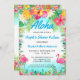 Caracteriza flores de hibisco tropicais brilhantes, flamingos divertidos e personalizados com suas informações. Perfeito para todos os tipos de eventos! Design©Rosalind Moore, Cherry Lane Designs.