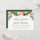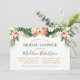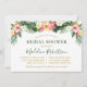 Moderno Convite de Chá de Noiva Floral Tropical em Aquarela inclui flores rosa, branco, amarelo e folhagens de palmeiras botânicas da ilha. Caligrafia Moderna. Texto Dourado. Verso Verde.