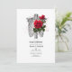 Convite de chuva para casais góticos de caveira floral vintage caprichosa em tons de preto e vermelho personalizável para os detalhes do seu evento.