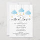 Tome um banho de maneira virtual quando não puder se reunir. Com nuvens azuis bebê e estrelas douradas em cordas num fundo branco, este convite de baby shower virtual online, sprinkle ou chá de casal é perfeito para todos os pequenos que estão a caminho. Adicione os detalhes da sua celebração em texto elegante para criar o convite perfeito. Desenhado por Thisisnotme©