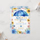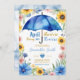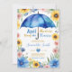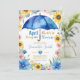 Convite de Chás de Bebê Floral com Guarda-Chuva Azul Chuvas de Abril Trazem Flores de Maio Girassóis
