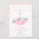 Chuva de Abril debaixo da Sombra de um Guarda-Chuva Rosa traz flores de Maio Festa de revelação da gravidez celebração Convite.