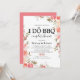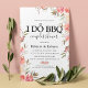 Convites elegantes de festa de engajamento de churrasco com um fundo branco chique e sofisticado que pode ser alterado para qualquer cor, uma exibição floral de canto em aquarela rosa e um modelo de celebração de churrasco eu faço doce e fácil de personalizar.