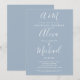 Um convite de chuveiro de casamento de casais elegante com monograma e nomes em estilo de letra de fôrma assinatura, este convite sofisticado pode ser personalizado com suas informações em letras brancas elegantes em um fundo dusty blue. Projetado por Thisisnotme