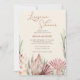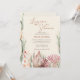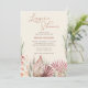 Convite de chuveiro de lingerie com caligrafia moderna e folhas de palmeira secas da moda, raios de sol e flores. Este é um design de aquarela em cores terrosas quentes de rosa poeira terracota tijolo argila queimada sienna e areia. A parte de trás do cartão tem uma lavagem de aquarela correspondente. Design boho rústico chique da moda para o seu chá de noiva. Por favor, explore minha loja para mais estilos e itens coordenados, na Coleção Boho Palm.