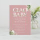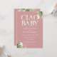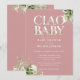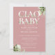 Convite ao chá de fraldas Ciao com elegante e bonito tipografia foliar botânica e verde num fundo cor-de-rosa-rosa empoeirado. Projetado por Thisnotme©