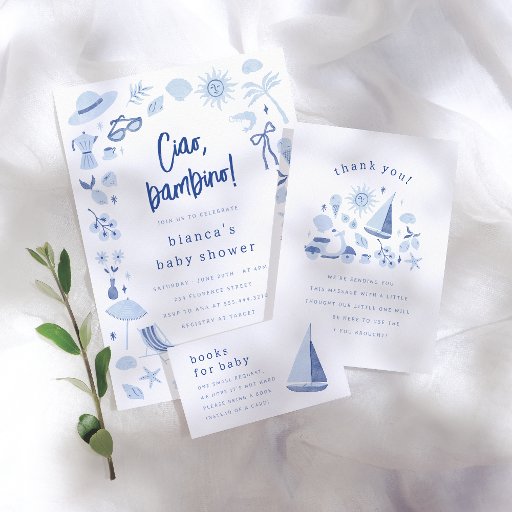 Convite Ciao Bambino Italian Blue Boy Baby Shower