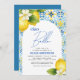 Celebre seu dia especial com um charmoso talento italiano usando o Chá de panela azul-limão italiano "Ciao Bella". Com limões amarelos vibrantes e padrões azuis intrincados, este design capta a essência do Mediterrâneo. Perfeito para uma noiva ser com amor por todas as coisas italianas, este convite elegante dá o tom para um evento festivo e na moda. Quer você esteja hospedando em um jardim aconchegante ou em um grande local, este convite certamente impressionará seus convidados com sua vibrante e alegre vibração.