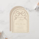 The arched silhouette is inspired by old-world Mexican architecture and vintage ceramic tile frames, while the scalloped border echoes the delicate cutout rhythm of papel picado banners. Soft cream and tan tones give the design a gentle, feminine feel, while the symmetrical floral accents and ornamental details reflect the elegance of traditional Talavera tile patterns. At the top, the hand-drawn ribbon bow adds a graceful coquette touch that keeps the design sweet, romantic, and perfect for honoring a baby girl or baby boy.