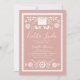 Celebrate your baby with festive Mexican charm using this Cielito Lindo Mexican Papel Picado Baby Shower Invitation! Featuring a beautifully crafted papel picado-inspired frame in crisp white over a soft dusty pink background, this invitation combines stylized florals, hearts, and doves with geometric motifs for a modern yet traditional folk art look.