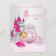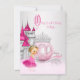 Cinderela convite de aniversário com carruagem de princesa de diamante rosa e prata e fundo de castelo com adorável menina loira vestindo um vestido rosa bonito com diamante tiara e pérolas. Essas lindas meninas, qualquer convite de aniversário de Cinderella rosa e prata, antes de um tempo, é facilmente personalizado para o seu evento simplesmente adicionando seus detalhes no estilo de fonte e cor, e a redação de sua escolha. Este é um design impresso sem brilho real, diamantes, pérolas, etc.