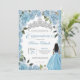 Celebre o aniversário de 15 com este maravilhoso convite da princesa floral, tema quinceanera! Apresentando belos rosas de bebê e de gelo azul, uma glamourosa tiara prateada e uma linda garota em seu vestido princesa, este convite certamente agradará aos seus convidados em antecipação. Este design é totalmente personalizável. Você pode editar o texto para qualquer ocasião, incluindo um 16, uma celebração de aniversário de princesa ou mais. Apenas escolha personalizar ainda mais. O compro também tem este design em outros tons de pele para combinar perfeitamente com o seu convidado de honra.