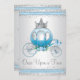 Cinderela convite de aniversário com uma bela, rico, princesa real, azul e princesa, carruagem e fundo azul claro e prateado brilhante. Essa linda garota, qualquer número de Cinderela, é facilmente personalizado para o seu evento através da simples adição de seus detalhes no estilo e cor da fonte, e do texto de sua escolha. Este é um design impresso sem brilho real, diamantes, rendas etc.