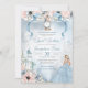 Este belo e elegante convite de conto de fadas convidará seus convidados com um tema Cinderela, com um castelo, belo botânico floral rosa e azul, um escorregador de vidro desaparecido e o convidado de honra em um vestido de bola maravilhoso. Todo texto é totalmente personalizável e pode ser editado de acordo com suas necessidades. Esta design está disponível com uma miríade de bonecas em diferentes tons de pele e cabelo. Visite também o compro para obter acessórios, sinais e muito mais complementares para concluir o evento.