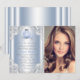 Convites de princesa Quinceañera da Bela Cinderela com uma bela carruagem azul e prata em um lindo fundo azul e prata com redemoinho da Cinderela. Este convite de aniversário da Cinderela é facilmente personalizado para o seu evento, basta adicionar sua foto e detalhes no estilo de fonte e redação de sua escolha. Este é um design impresso sem diamantes reais, lantejoulas, jóias, folha metálica, etc.