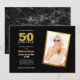 Um convite moderno para a festa de 50 anos. A foto está na metade direita, em uma moldura de folha dourada falsa.