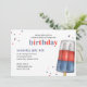 Este design apresenta um aniversário branco e cor-de-água, um quarto de verão de 4 de julho, aniversário de CHURRASCO piquenique no quintal, aniversário de independência patriótica, uma bela festa de diversão caprichosa, uma festiva festa de comemoração do verão, uma simples tipografia moderna minimalista, um doce trabalho de arte de picolé, um colorida 4 de julho, um convites de festas de aniversários caprichoso