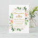 Quinceanera, Elegante moderno, Cores Aquáticas, Cor de Rosa, Esbranquiçada, Rosas Florais e Cartão de Convite Dourado para Verde Botânico