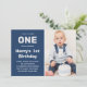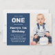 Cinza Azul de Fotografia Personalizada Moderna | Convite para primeiros aniversarios | Convites De Primeiro Aniversário Para Rapaz Bonito