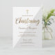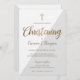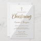 Parabéns no Natal do seu filho. Este evento é algo que deve ser apreciado e celebrado. Eu projetei este Convite Cristening moderno usando detalhes falsos de ouro e tipografia com toque triangular de sotaque de cinza. As fontes de script elegantes, uma cruz impressão dourada e um modelo fácil de usar, personalize este convite para o dia especial do seu filho. Inclua o nome e os detalhes do evento.