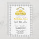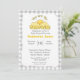 Cinzas e cheques brancos têm um sol bonito saindo das nuvens. Este padrão é perfeito para meninos ou meninas. O ditado popular, você é meu sol, é um tema de chá de fraldas excelente. Personalize o convite com os detalhes do seu chá de fraldas.