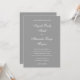 Convite de casamento minimalista com uma caligrafia de rico branco emparelhada com uma fonte moderna de todos os bonés. Personalize a cor da fonte clássica para corresponder ao seu casamento. Um estilo elegante com um sólido fundo de cinza moderno.