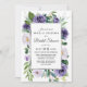 Cinza Prateada Púrpura Convites de chá de panela Florais de Aquarela - apresentam elegantes flores de aquarela em tons de roxo. A caixa de texto apresenta uma caixa de texto moderna impressa em prata ou cinza. Exibir a coleção correspondente nesta página para ver os produtos coordenadores.