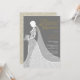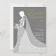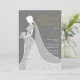 Um chá de panela com uma noiva que veste um vestido elegante de casamento em um fundo de cinza de ardósias, belo texto dourado e todos os seus detalhes especiais de chá de panela totalmente personalizados em texto branco chico. O inverso apresenta um padrão de local correspondente e um plano de fundo de cor de fundo. Você pode personalizar a cor de fundo tanto na frente quanto no verso para coordenar com seu tema de casamento.
