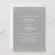 Um convite de casamento moderno e elegante em cinzas com brilho prateado e letra cursiva.