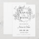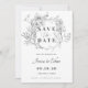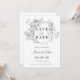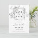 Convite de casamento minimalista Salve o cartão de data com floral e caligrafia de cinza.
