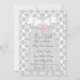 Bonito vestido branco com pérolas cor-de-rosa e arcos em um convite para chás branco e cinza, bebê rosa e cor-de-rosa. Adicione os seus detalhes à frente e atrás adicionando os detalhes do evento, estilo da fonte, tamanho da fonte e cor e texto. Alguns gráficos gráficos ©BELGA-Dodles.