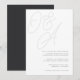 Um belo convite de casamento baseado em tipografia, com monograma, que apresenta suas iniciais em letras de script sobredimensionadas no topo, em tons em tons para um efeito de marca d'água. Personalize com seus detalhes de casamento em letras clássicas de serif alinhadas no canto inferior direito. Nossa pintura de Cinza faz uma declaração clássica com preto suave e mal há cinzas em um fundo branco nítido.