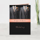 Formal, cinzas com gravata floral de pêssego e rosas de fuzz de pêssego bonito. Bonito cor de pêssego fuzz, faixa de gradiente para o seu texto. O convite perfeito para o casamento de gay para o casal moderno e feliz de hoje.