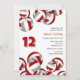 Este convite de festas temático de voleibol diverso para uma festa de aniversário apresenta clusters de volichões vermelhos, cinzas e brancos nas bordas superior e inferior da frente e um cluster de solteiros que cobre o verso do convite - personalize os detalhes da festa em um fundo branco - por katz_d_zynes